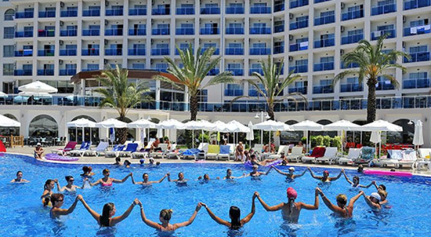 Ресторант (бюфет), бар, диско бар, фитнес зала, аеробика, турска баня, сауна, масаж, фризьорски салон, козметичен салон, пералня, открит басейн, плажен волейбол, тенис на маса, билярд/снукър, водни спортове, паркинг, плаж - собствен, пясък. За децата: детски басейн, 3 водни пързалки ,детска площадка, мини клуб,Бар на плажа - безплатно.
