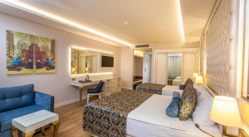 Основен ресторант, 4 а-ла-карт ресторанта ( турски, рибен, италиански, азиатски – платени с предвариелна резервация), 6 бара, сладкарница, 2 открити и 1 закрит басейн, аквапарк, СПА център, анимация, дискотека, паркинг.