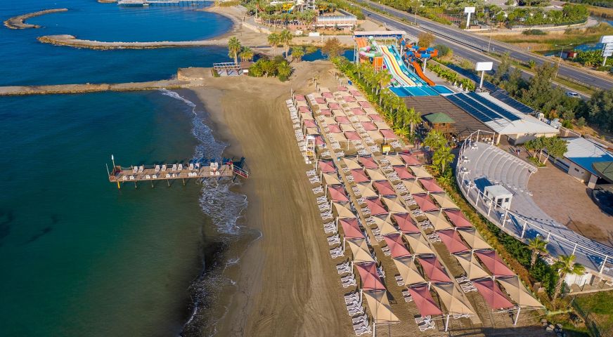 Намира се на 100 км. от летище Анталия, на 10 км., на 22 км. от Алания, на 400 м. от брега на морето. Построен през 2016 г. с обща площ 37.000 м2., реновиран през 2019 г.