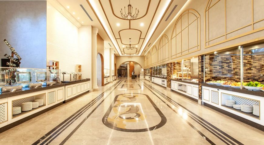 Основен ресторант, 4 а-ла-карт ресторанта ( турски, рибен, италиански, азиатски – платени с предвариелна резервация), 6 бара, сладкарница, 2 открити и 1 закрит басейн, аквапарк, СПА център, анимация, дискотека, паркинг.