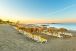 Собствен, пясъчно-чакълест с дължина на плажната ивица 350 м, платформа. Чадъри и шезлонги на плажа и при басейна - безплатно. Плажни кърпи – срещу депозит.
