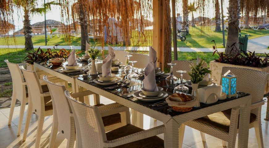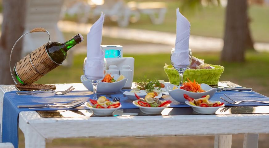 All Inclusive - закуска, обяд и вечеря на шведска маса, междинни хранения, местни алкохолни и безалкохолни напитки - без лимит (съгласно концепцията на хотела).