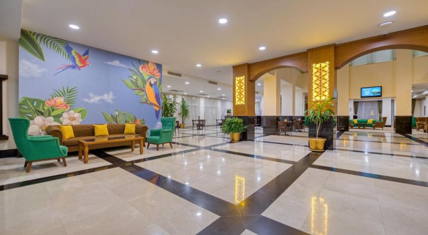 Намира се на 95 км от летище Анталия, на 100 км от центъра на Анталия, на 30 км от центъра на Алания, на брега на морето. Построен 1994 г. на обща площ от 14 500 м2. Последно реновиран 2023 г.