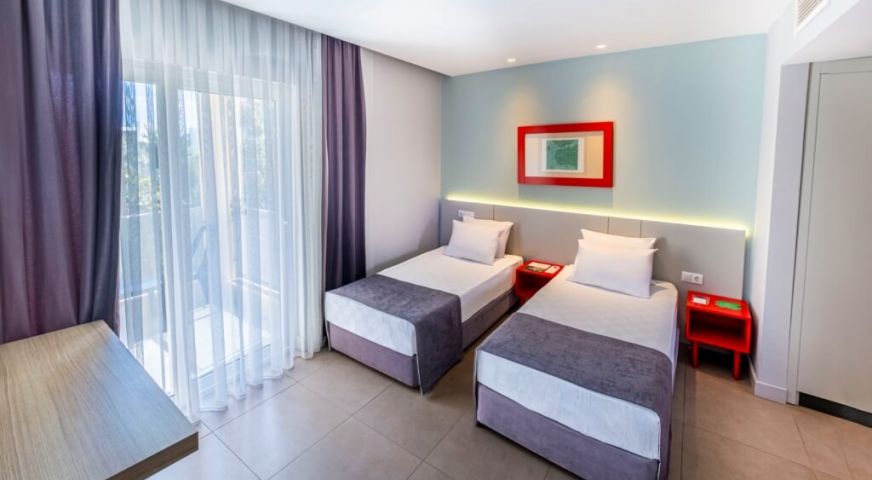 Хотелът разполага с общо 308 стаи от които 251 стандартни стаи Standard Rooms (изглед към части на хотела, градина или планина - 18 м2.), 54 фамилни стаи Family Rooms (изглед към части на хотела, градина или планина - 45 м2.