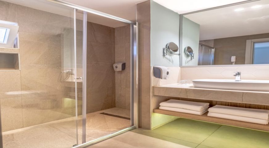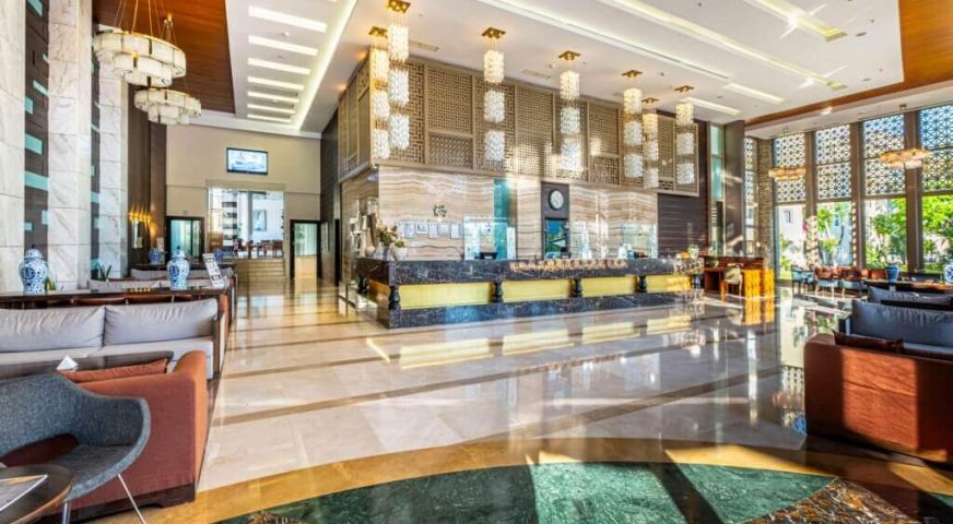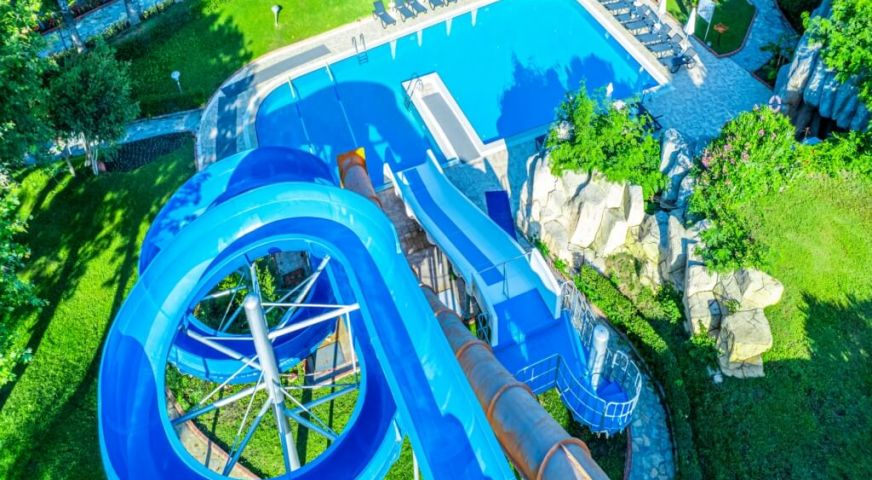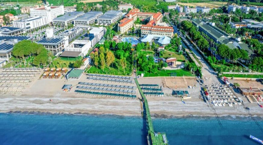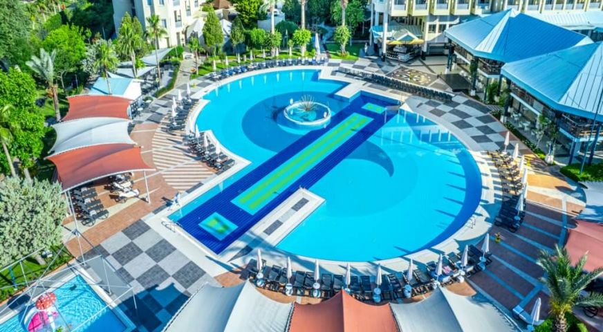 Основен ресторант, 3 а-ла карт ресторанта (средиземноморски, италиански, турски – 1 безплатно посещение). 4 бара, открит и закрит басейн, водни пързалки, сладкарница, мини клуб, мини диско, СПА център, конферентна зала. Wi-Fi (безплатен).