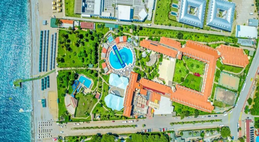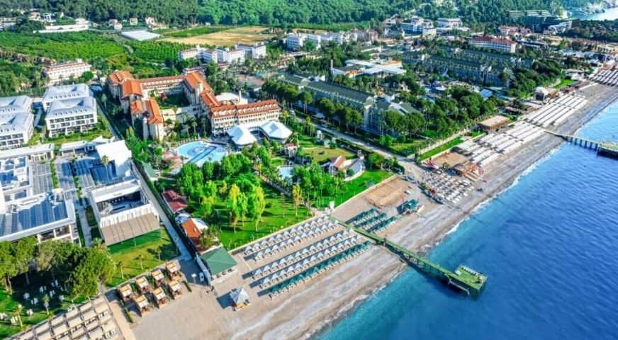 Намира се на 60 км. от летище Анталия, на 50 км. от центъра на Анталия и на 7 км. от Кемер, на брега на морето. Построен през 1998г. с обща площ 48 000 м2. През 2020г. са реновирани стаите, а през 2023г. общите части на хотела.