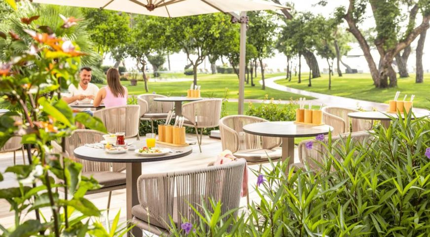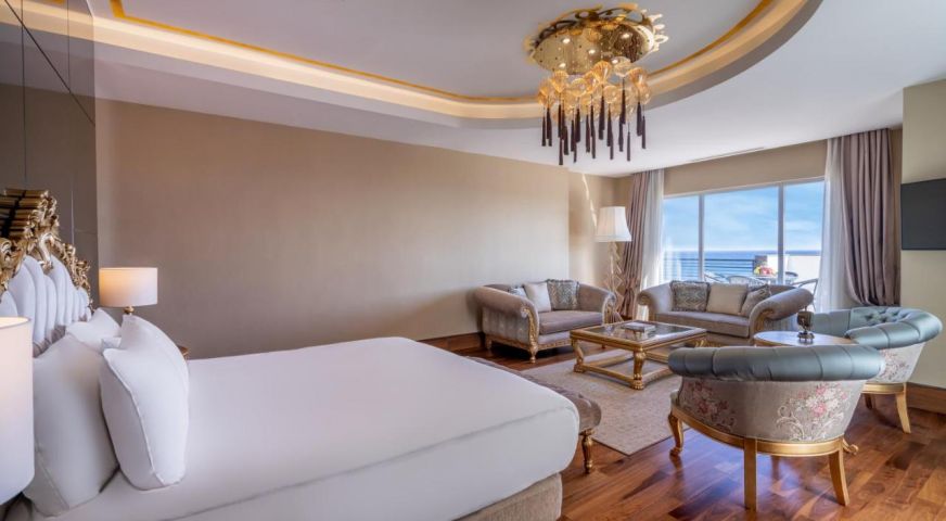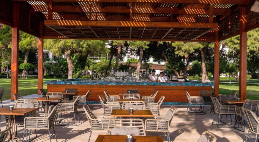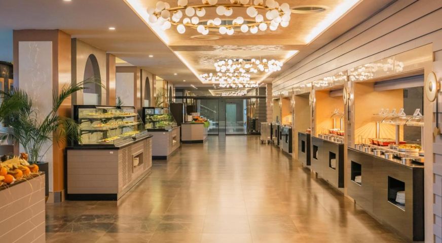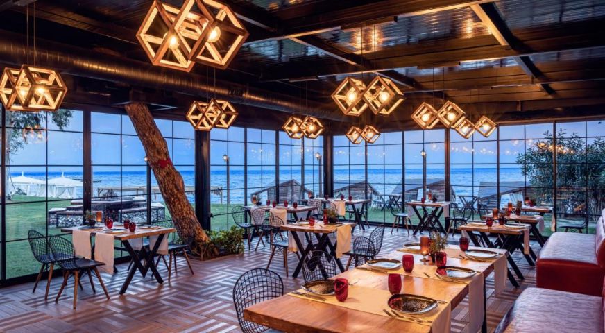 Основен ресторант, 4 а-ла-карт ресторанта(с предварителна резервация), 4 бара, 2 конферентни зали, 1 открит басейн, 1 закрит басейн, 3 водни пързалки, 2 тенис корта, център за таласотерапия, салон за красота, СПА център За децата: мини клуб (4-12 г.), детегледачка (доп.заплащане), детска площадка. Безплатни услуги: турска баня, фитнес център, анимация, закрит басейн Платени услуги: фризьор, масаж, салон за красота Плаж: Собствен чакълест. Чадъри, шезлонги, матраци и плажни кърпи - безплатни.