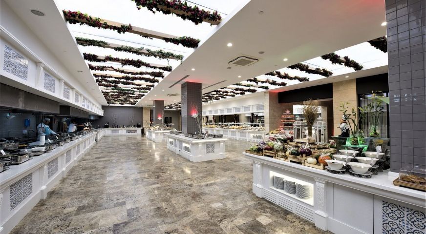 Работно време на основния ресторант: Ресторант Begonvil: закуска (07:00-11:00), обяд (12:30-14:30), вечеря (18:30-21:30).