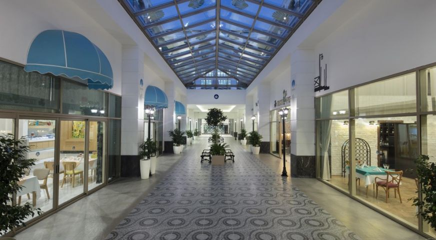 Собствен пясъчно-чакълест плаж, който се намира от другата страна на пътя. Кей и бар на плажа (09:00 ч. - 23:30 ч.). За удобство на своите гости предлага 4 открити и 1 закрит басейн, аквапарк. Шезлонги, чадъри, плажни кърпи на плажа и при басейна се предоставят безплатно.