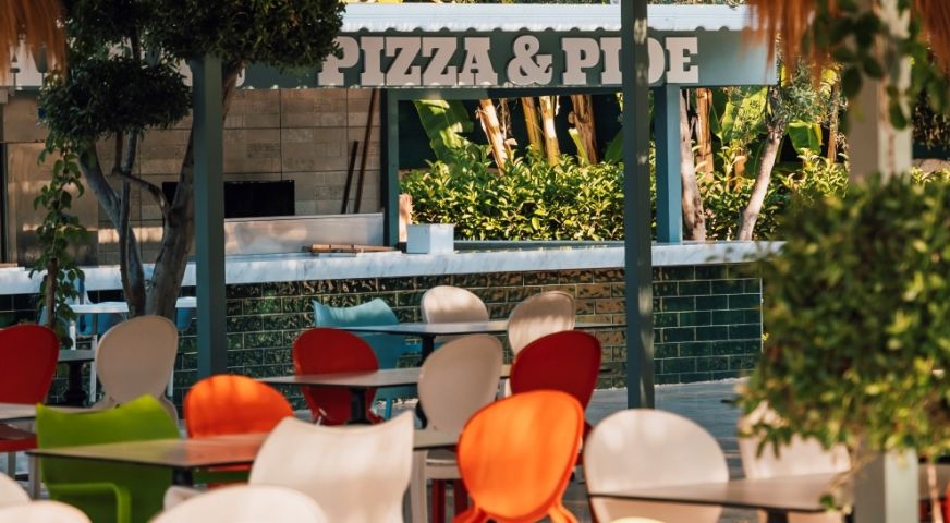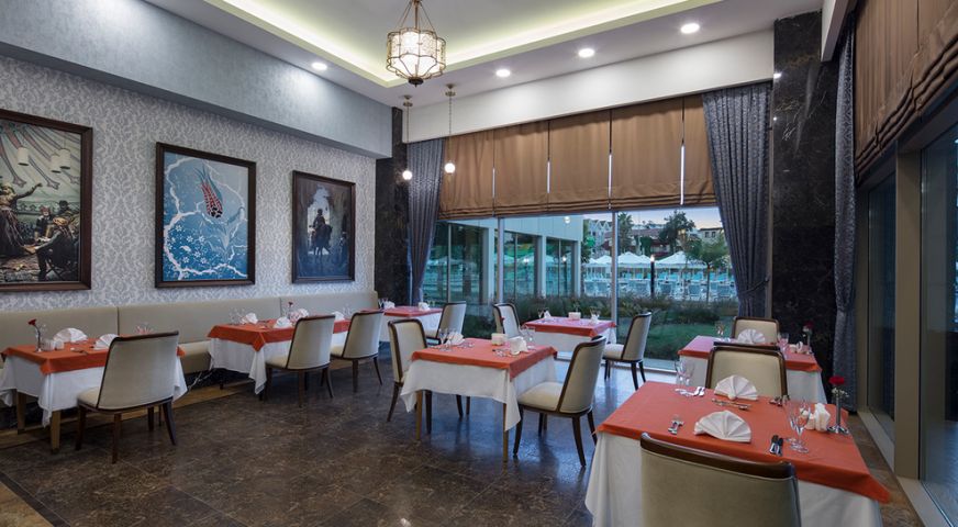 На разположение на гостите са основен ресторант и 2 а`ла карт ресторанта: рибен и стек ресторант (срещу заплащане, с предварителна резервация). В 5-те бара се предлагат разнообразни напитки. Има също кафетерия и гюзлеме кът.