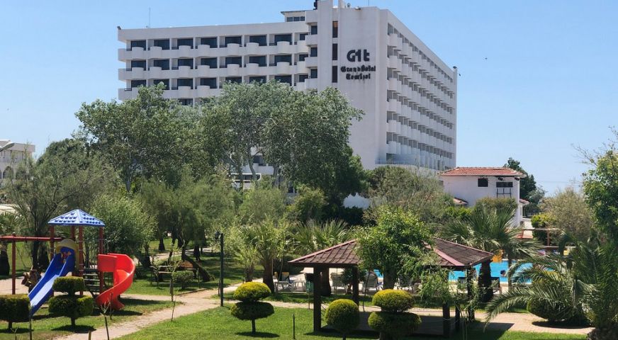Grand Hotel Temizel 5* e разположен на плажа Саръмсаклъ в Айвалък, само на 8 км от центъра на града и на 160 км от летището в Измир.