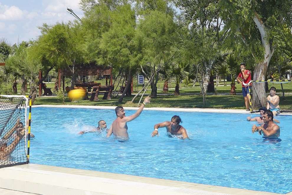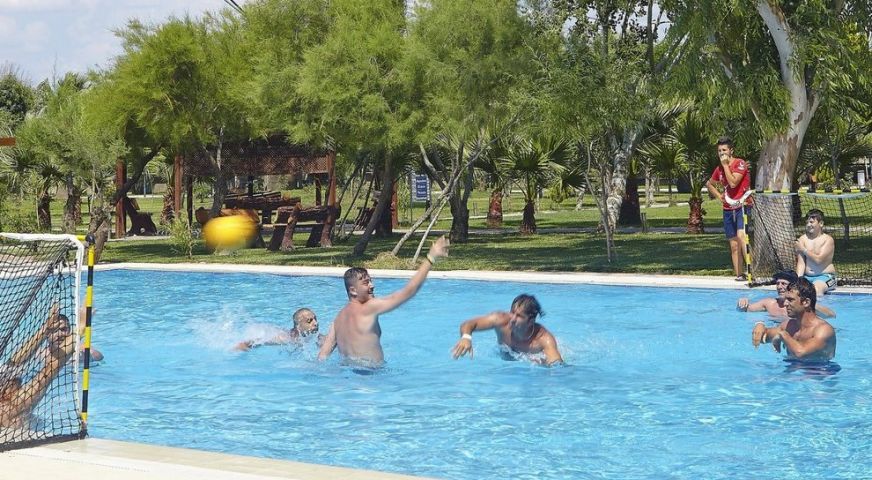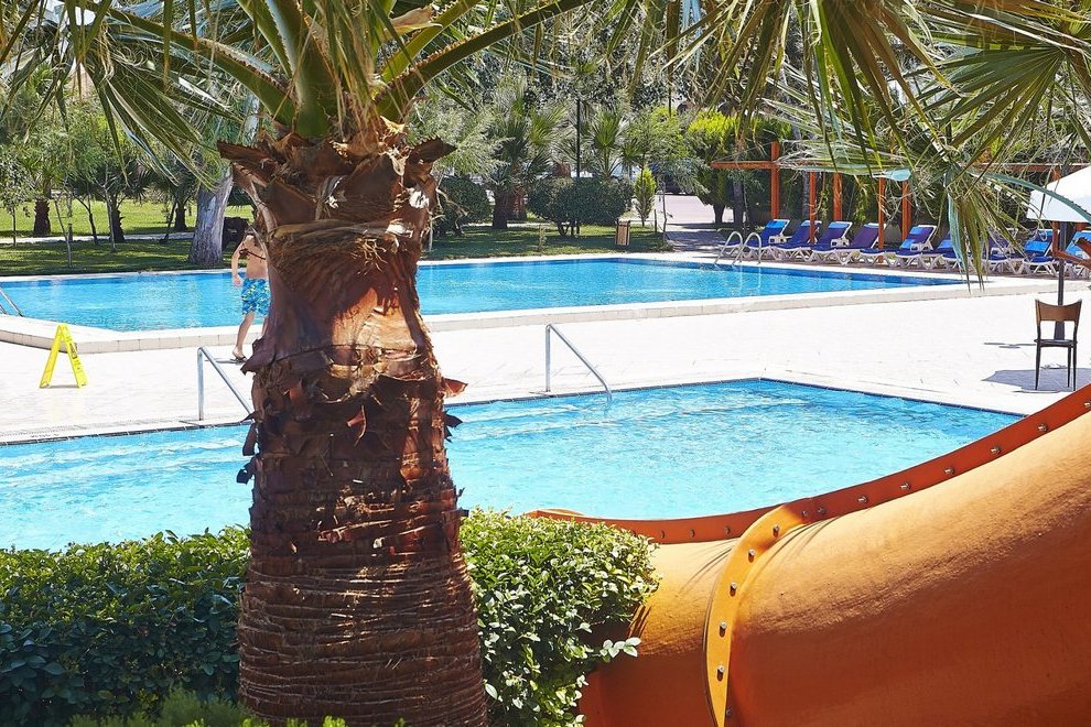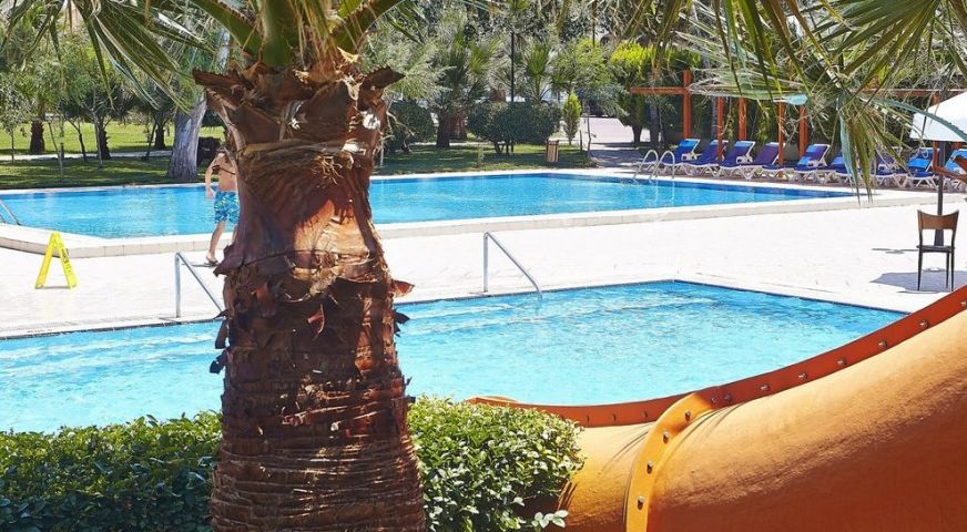 Собствен пясъчен плаж. Хотелът разполага и с открит плувен басейн и басейн за най-малките, които работят сезонно. Чадъри, шезлонги, хавлии за плаж се предоставят безплатно.