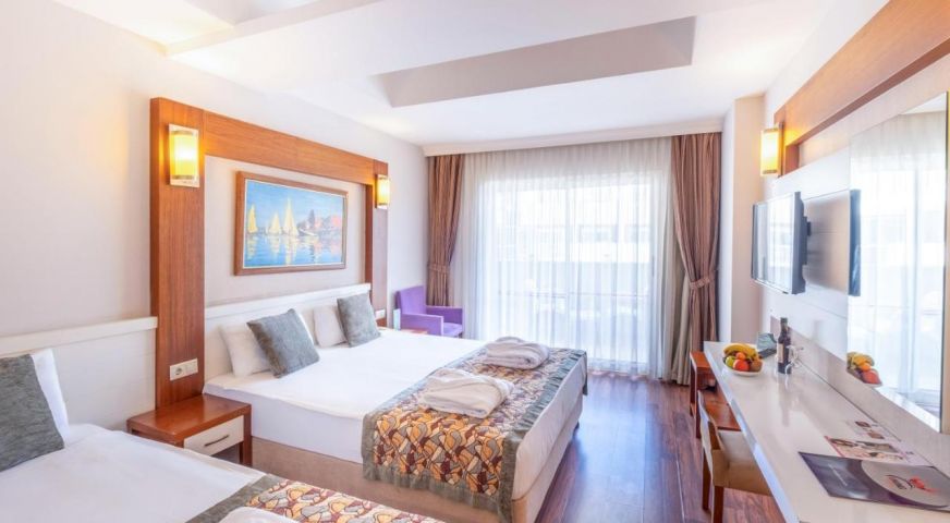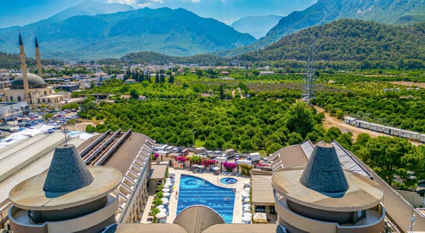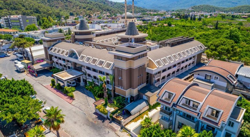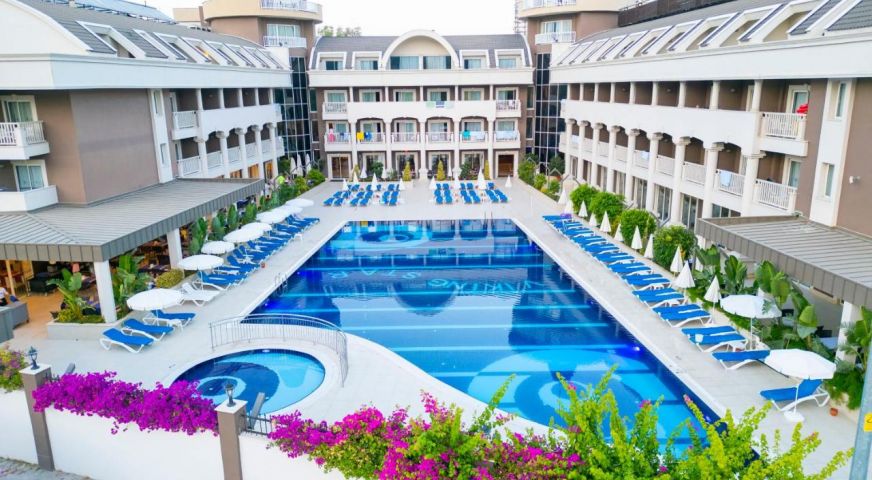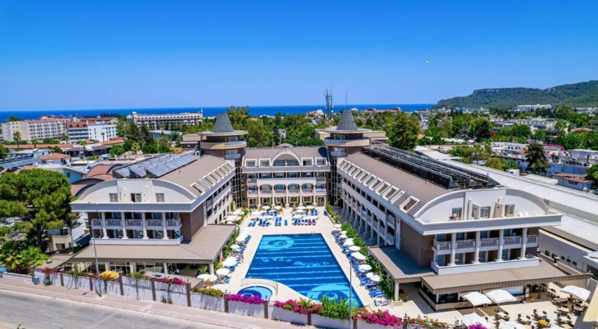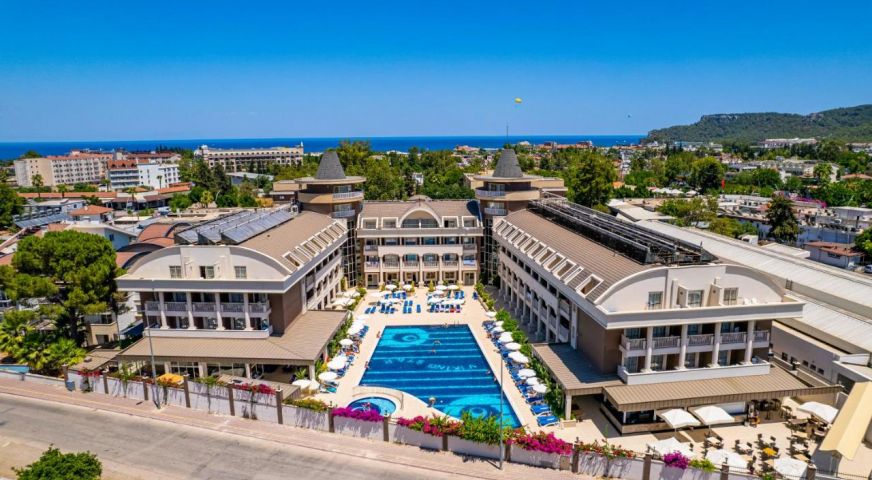 Намира се на 600 м от брега на морето, на 45 км от центъра и на 55 км от летището в Анталия. Хотела заема площ от 6 000 м2.