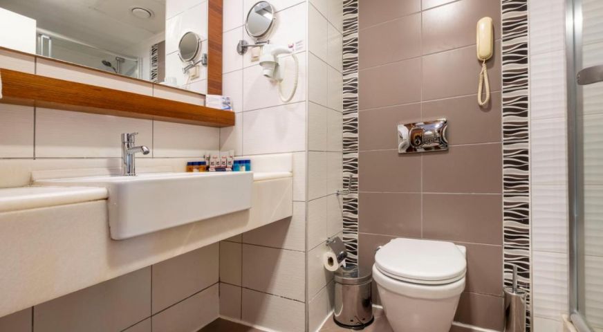 Душ, сешоар, централен климатик, телевизор, сейф (срещу заплащане), мини-бар, килим, балкон, ежедневно почистване на стаите, смяна на спалното бельо три пъти седмично, румсервиз (срещу заплащане)