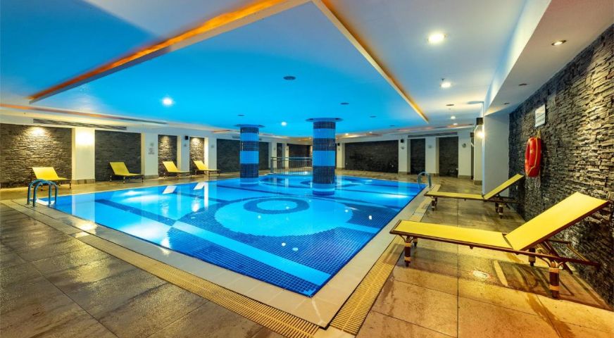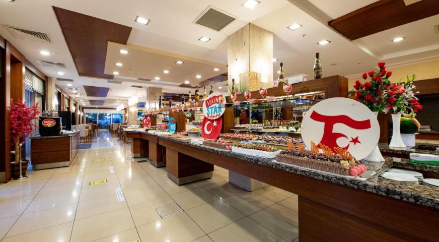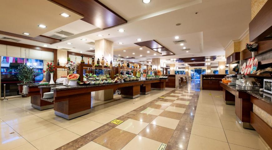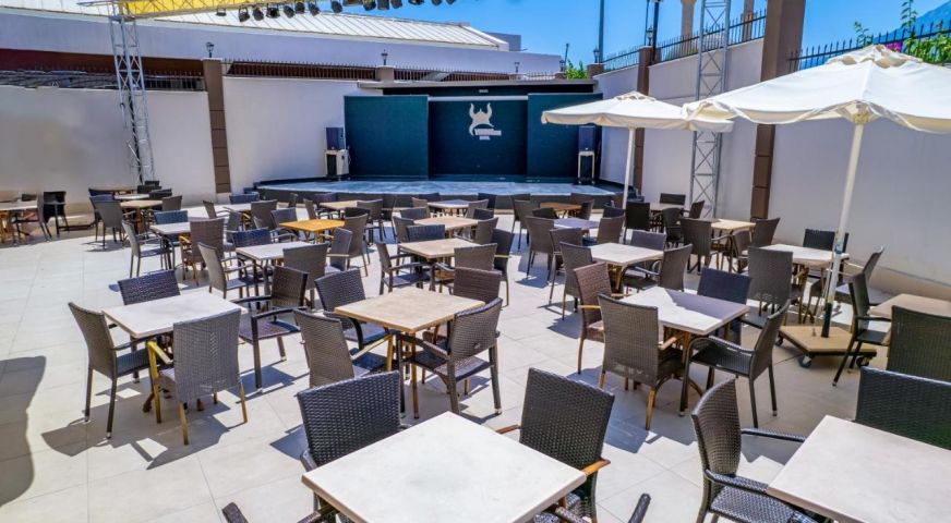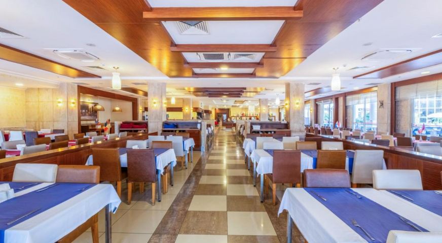 Основен ресторант, 2 открити басейна (350 и 97 кв.м), 2 закрити басейна, анимация, амфитеатър, дискотека (безплатно), обмен на валута, зала с телевизия, зала с игри (безплатно), магазини, конферентна зала (250 човека), паркинг, турска баня, сауна, фитнес център, дартс, тенис на маса, безжичен интернет в лобито на хотела