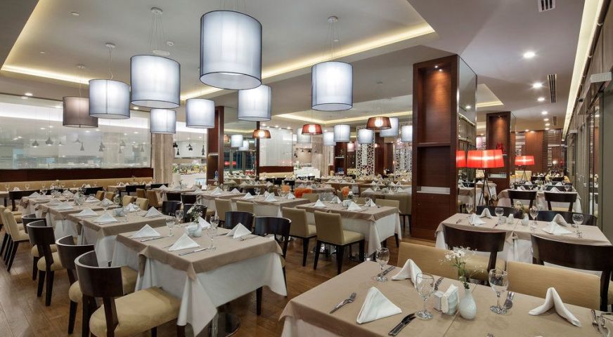 Работно време на основния ресторант: Закуска 07:00-10:00, късна закуска 10:00-10:30, обяд 12:30-14:30, вечеря 18:30 - 21:00, късна вечеря (супа) 00 :00 - 01:00 часа.