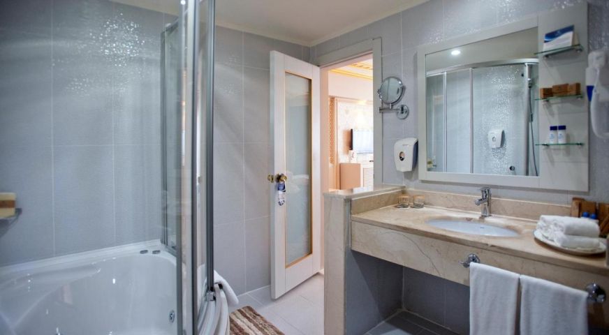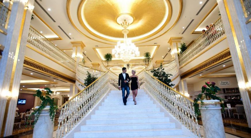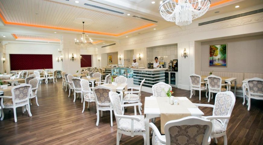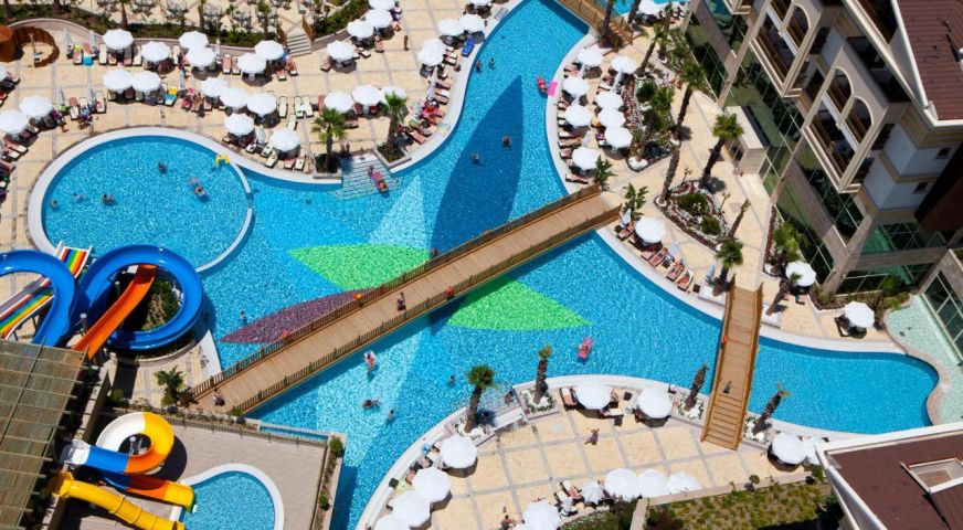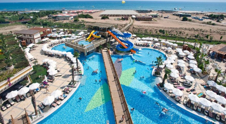 Основен ресторант с диетично и вегетарианско меню, 5 ресторанта a - лa - карт (италиански, турски, рибен, мексикански, китайски), 6 бара, открит басейн, закрит басейн, 3 водни пързалки, кинотеатър, лекарски кабинет, SPA - център, фризьор, магазини,2 конферентни зали. За децата: детско меню, детски басейн, аквапарк, детски мини клуб(4-12г.), младежки клуб(13-16г.) Безплатни услуги: турска баня, сауна, вътрешен басейн, тенис на корт, тенис на маса, дартс, мини голф, баскетбол, фитнес зала, Интернет. Платени услуги: масаж, билярд, боулинг, кан, водни спортове, фризьор, СПА - център.