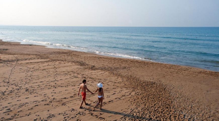 Собствен пясъчен плаж. Чадъри, шезлонги и матраци - безплатно. Плажни хавлии - срещу депозит.