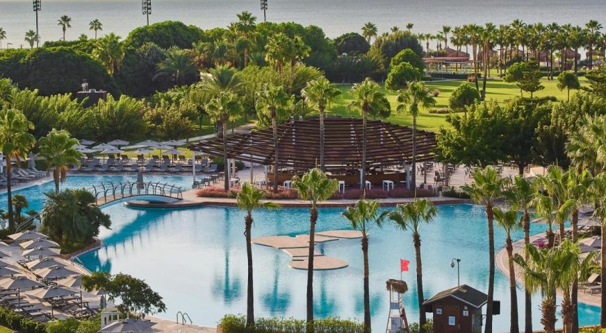 Основен ресторант, 8 а-ла-карт ресторанта (анталийски, средиземноморски, турски, барбекю, рибен, пицария, интернационален, суши бар - с предварителна резервация), 6 бара, сладкарница, 4 открити и 1 закрит басейн, СПА център, конферентна зала, паркинг.