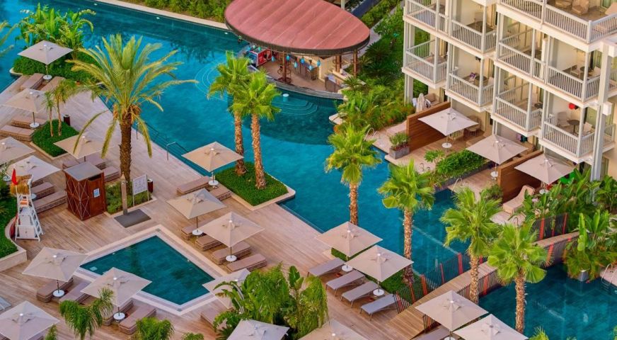 Намира се на 10 км. от летище Анталия, на 12 км. от центъра на Анталия, на 3 км. от центъра на Лара, на брега на морето. Построен през 2005г. с обща площ 110.000 м2, реновиран през 2018г.