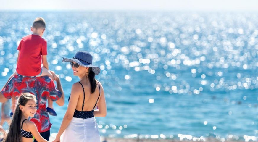 Плаж: Градски, пясък и чакъл, през тунел. На басейна и плажа: чадъри, шезлонги,матраци, плажни хавлии – безплатно.