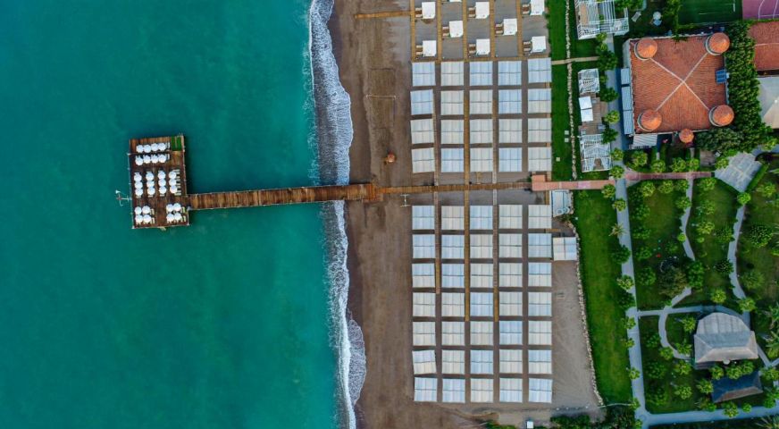 Хотелът се намира на брега на морето, в района на Лара, на 12 км. от центъра и 10 км. от летището на Анталия. Построен е през 2005г. и е последно реновиран 2019-2020г. с обща площ от 33 000 кв.м.