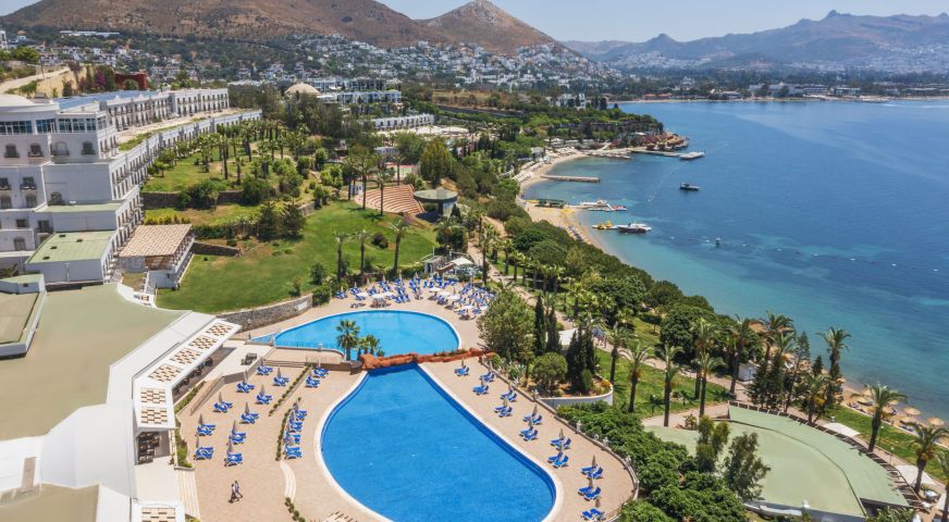 Хотелът е разположен на 51 км. от летище Милас, на 20 км от центъра на Бодрум, в района Тургутрейс, на 1 км от центъра на Тургутрейс, на брега на морето. Построен е през 2004 г., с площ от 30.000 m2, последно реновиран изцяло през 2022 година.