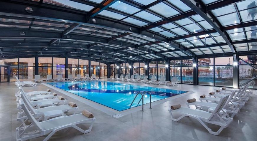 1 вътрешен басейн 130 кв.м (отопляем от 1/11 до 31/03).