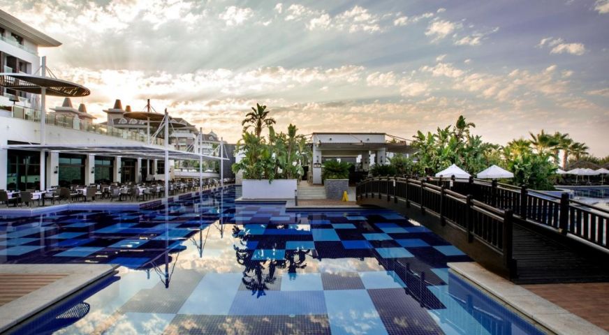 Основен ресторант, 1 а-ла-карт ресторант (интернационален, с предварителна резервация съгласно концепцията на хотела ), 5 бара, сладкарница, открит и закрит басейн, СПА център, дартс, фитнес, тенис корт, тенис на маса, боча, водна гимнастика, аеробика, баскетбол, плажен волейбол, фризьор, пералня, магазини, лекар, 1 конферентна зала.