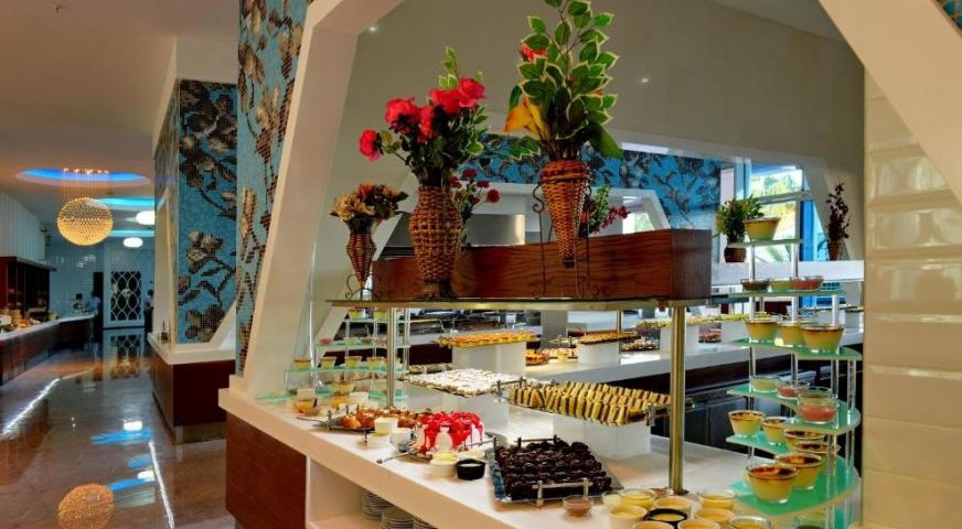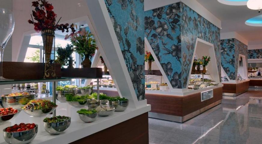Хотелът има основен ресторант, 3 а`ла карт ресторанта с турска, италианска и азиатска кухня. В 5-те бара се предлагат разнообразни освежаващи напитки. All Inclusive базата на изхранване включва закуска, обяд и вечеря на шведска маса, междинни хранения, местни алкохолни и безалкохолни напитки - без лимит.