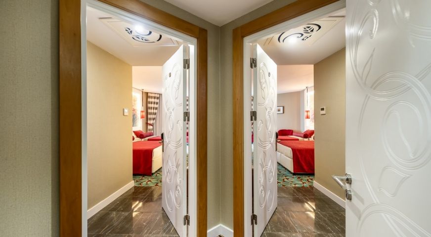 С обща площ 40.000 кв. м, хотелът посреща гостите си в 778 климатизирани стаи, разположени в една основна сграда. Разполага с 616 Standard room (с изглед суша или море), Child friendly стаи (в тях две деца се настаняват безплатно), 130 Family connection (2 спални, 1 баня), 20 Suite (1 спалня). Всички стаи имат телевизор, телефон, баня с душ/вана, сешоар, сет за кафе/чай, минибар (срещу заплащане), сейф (срещу заплащане). Почистване на стаите и смяна на кърпите – всеки ден, смяна на спалното бельо – 3 пъти в седмицата.