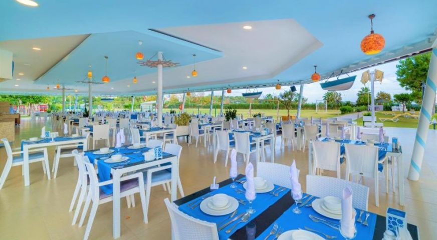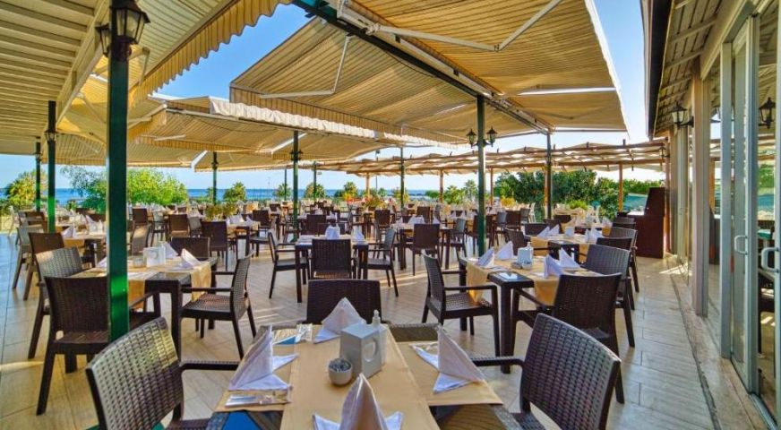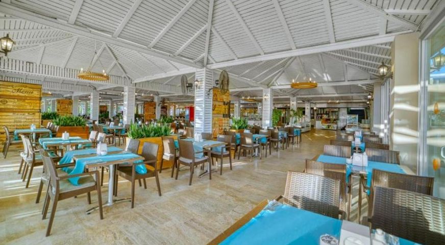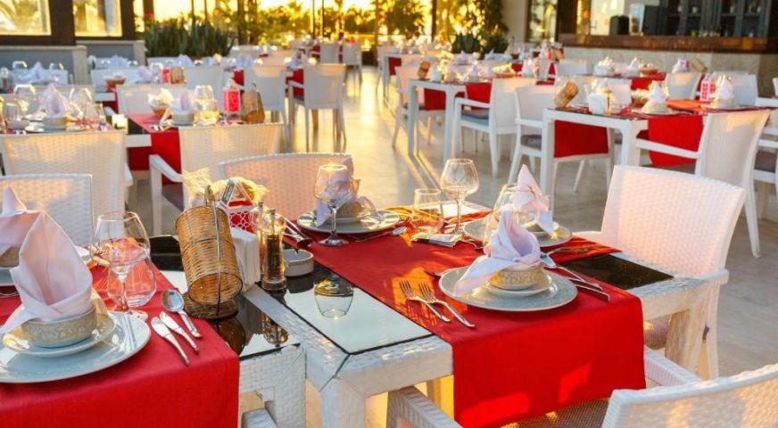 На разположение на гостите са основен ресторант и три а`ла карт ресторанта: турски, италиански, рибен. Освежаващи напитки и закуски се поднасят в 5 бара: бар на плажа, бар при басейна, Rose bar, диско бар, сладкарница Bon Bon.