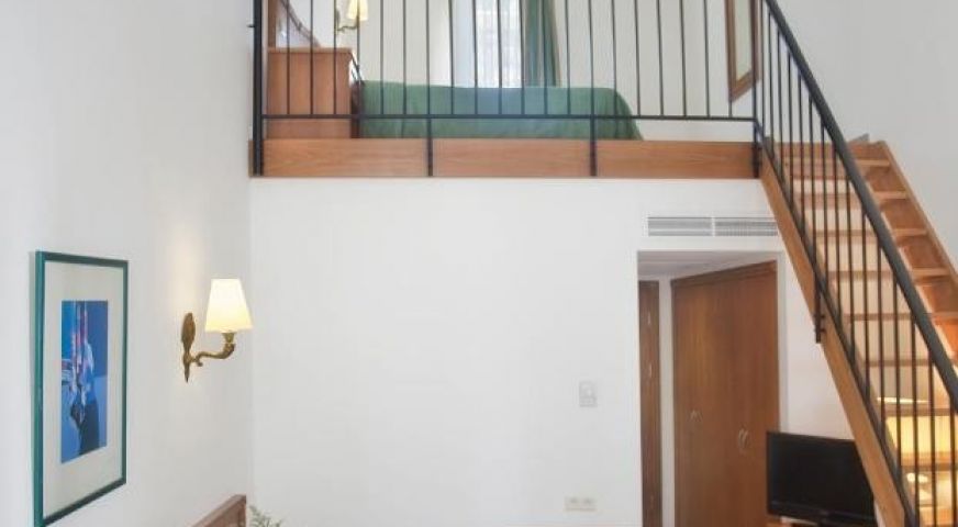 FAMILY DUBLEX: 55-60 м², 2-етажна стая, 2 спални, интериорна врата, 1 баня, балкон, максимално настаняване — 4 души.