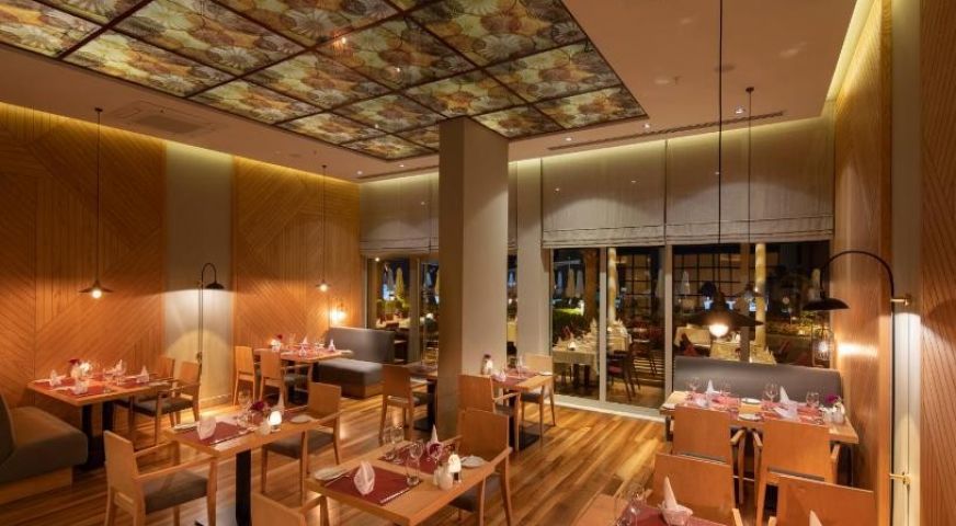 На територията на хотела: Хотелът предлага разнообразие от ресторанти, барове, спортни дейности, открити и закрити басейни за възрастни и деца, спа център и вкусна храна. Хотелът предлага безплатен Wi-Fi, както и конферентна зала, бизнес център, коли под наем, пералня, лекарски услуги, паркинг, салон за красота, магазини, обмяна на валута. Хотелът разполага и с няколко ресторанта и бара. Основният ресторант "Диван" работи от 07:00 до 21:30 часа. Хотелът разполага още с турски ресторант "Safran", рибен ресторант "Ocean", италиански ресторант "Olive" и скара "Aqua", които се ползват срещу допълнително заплащане. Хотелът разполага още с бийч бар "Ocean" (09:00-18:00), бар на басейна "Yasemin" (09:00-18:00) за възрастни, лоби бар "Sorgun Lounge" (24 часа), снек бар на басейна "Aqua", бар "Club House" (16:00-00:00), бар "Butterfly" (19:00-02:00) за възрастни и семеен бар на басейна. Има и сладкарница "Kokumi" (10:00-18:00). Хотелът разполага с два отопляеми външни семейни басейна, пет отопляеми външни басейна за възрастни с джакузита и вътрешен отопляем басейн.