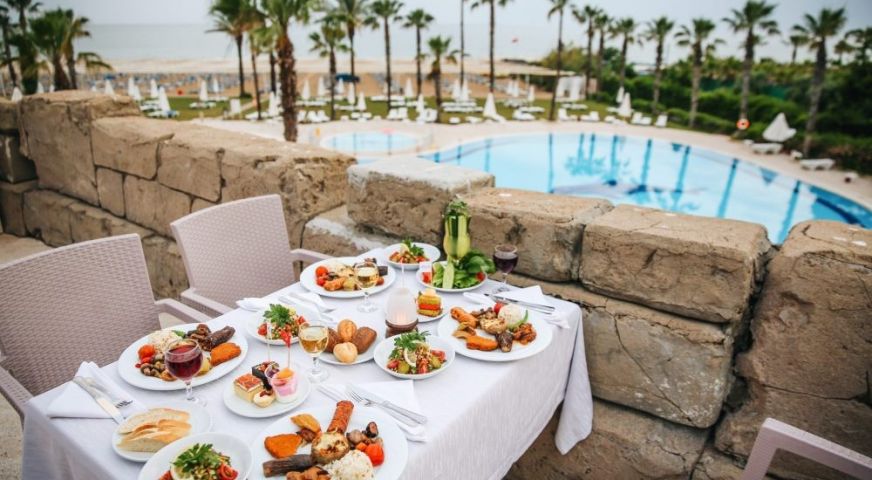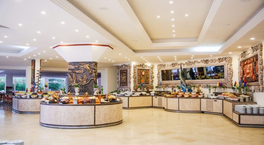 На територията на хотела: Основен ресторант, 2 а-ла карт ресторанта (османски, италиански - с предварителна резервация, за целия престой се позволява 1 посещение на един ресторант – безплатно с предварителна резервация от предходния ден, от 15.06-15.09), лоби бар, бар при басейна, дискотека, снек бар, водни пързалки, открит басейн, закрит басейн, СПА център.