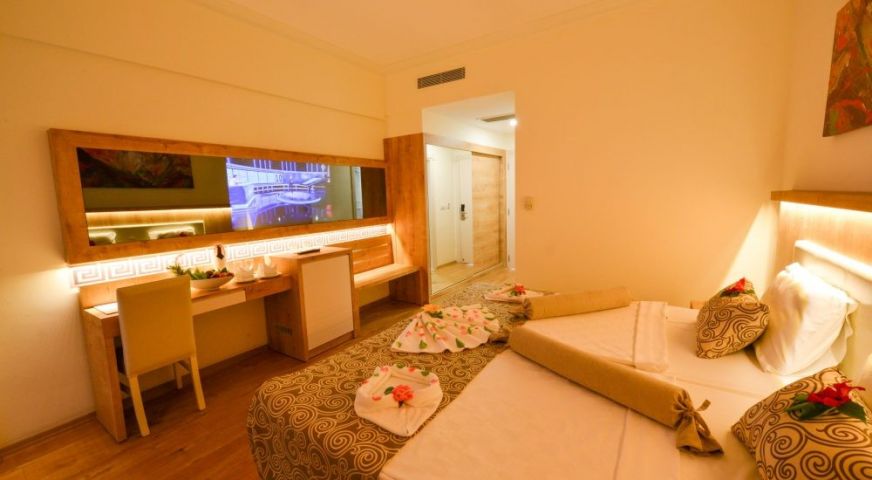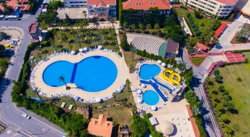 Разположение: Хотелът се намира на 65 км от международното летище в Анталия, на 12 км от Манавгат, на 5 км от Сиде, на брега на морето. Построен е през 1989 г., последната реновация е направена през 2022 г., и разположен върху територия с обща площ от 40 000 м2.