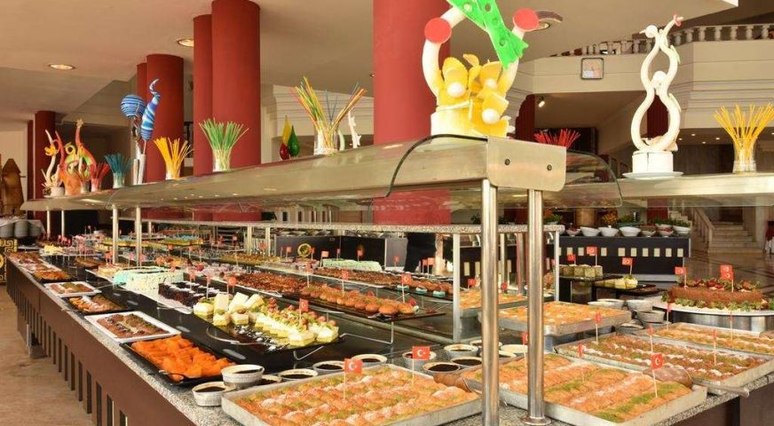На територията на хотела: Основен ресторант, 2 а-ла карт ресторанта (османски, италиански - с предварителна резервация, за целия престой се позволява 1 посещение на един ресторант – безплатно с предварителна резервация от предходния ден, от 15.06-15.09), лоби бар, бар при басейна, дискотека, снек бар, водни пързалки, открит басейн, закрит басейн, СПА център.