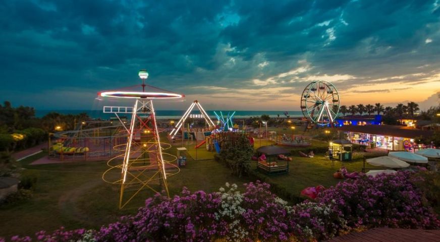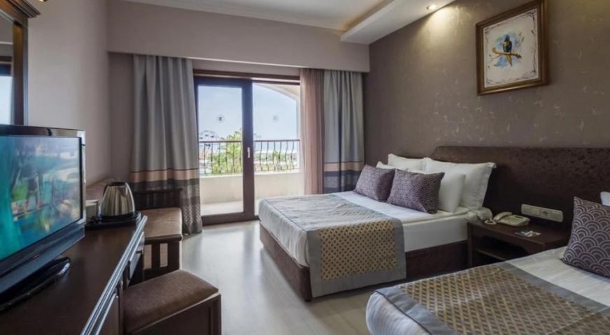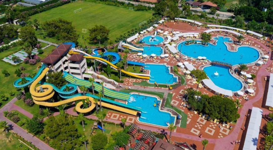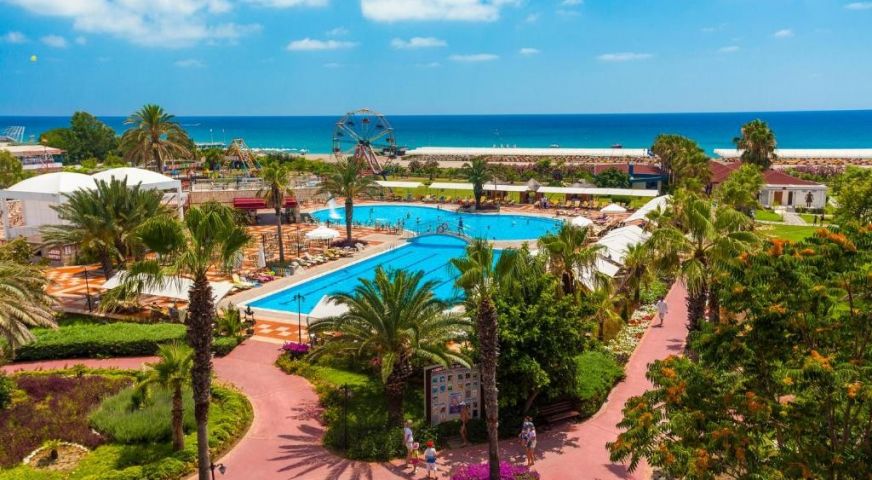 Хотелът се намира в предградията на най-красивия град в Турция - Анталия. Първа брегова линия, частен пясъчен и чакълест плаж, всякакъв вид развлечения и спортни събития през деня, аквапарк, увеселителен парк, СПА център със закрит басейн, сауна, турска баня и джакузи и много други. Първокласното обслужване и турското гостоприемство ще Ви осигурят една незабравима почивка и страхотно настроение. Има много а-ла-карт ресторанти с а-ла-карт опции, предлагащи турска, международна и италианска кухня. Можете също така да хапнете в снек бара. В баровете, които включват дискотека и лоби бар, се сервират освежаващи напитки и коктейли. За малките гости на комплекса има мини клуб. Другите удобства включват фитнес зала, тенис корт, мини голф и няколко конферентни зали. Хотелът предлага широка гама от водни спортове. Всеки ден през деня се провеждат спортни и развлекателни събития за възрастни и деца. На място има безплатен Wi-Fi и е подходящ за семейства с деца.