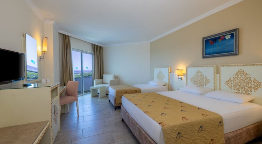 Хотелът е разположен на брега на морето и е с площ от около 50 хил. кв.м. Няколко басейна, аквапарк, анимационни програми и частен плаж го правят идеално място за плажна и семейна почивка. Хотелът разполага с 10 ресторанта, пет от които а ла карт: рибен, скара, турски, италиански и мексикански. Има единадесет бара, включително диско бар, кафене, сладкарница, кръчма и бар на плажа. Хотелът предлага ол инклузив обслужване. Опциите за забавление включват плажен волейбол, мини голф, тенис на маса и боулинг. Гостите могат да посетят хамам, сауна, фитнес център или да си поръчат масаж.