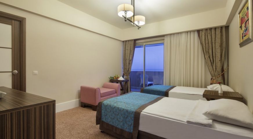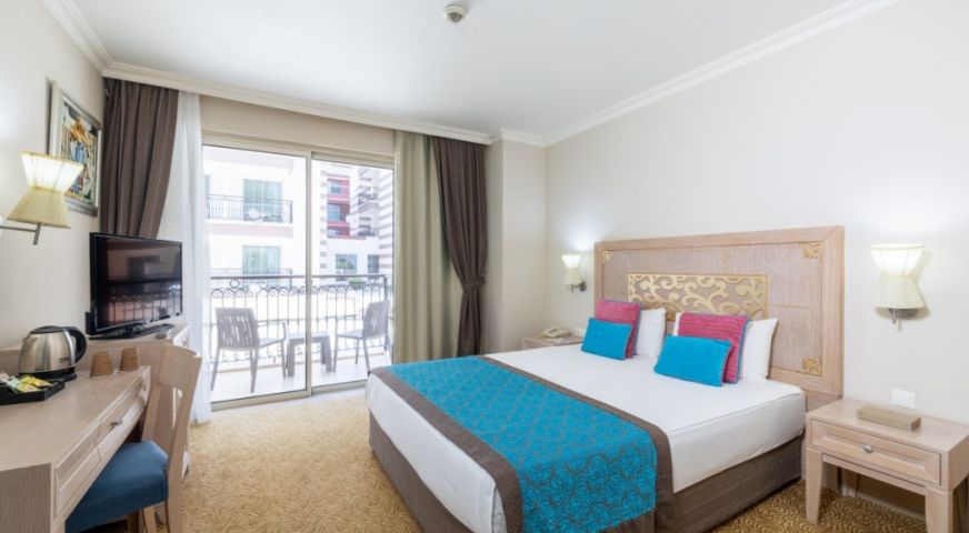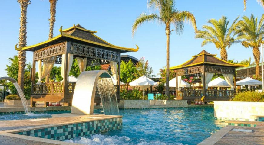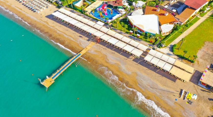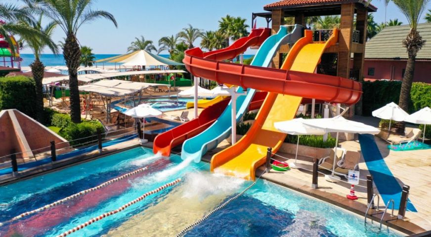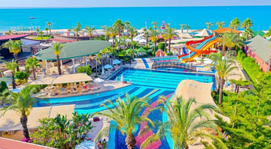 Курортът се намира директно на плажа на курорта Белек-Богазкент. Предлага модерни стаи с балкони, открити басейни, аквапарк с водни пързалки, детска площадка, фитнес зала, редовни развлекателни програми и СПА център с джакузи. Подходящ за семейства с деца.