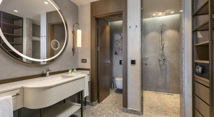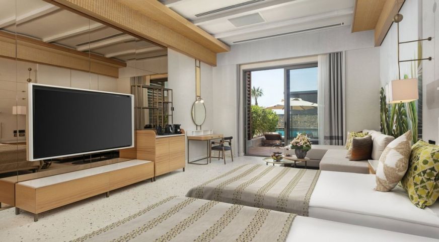 В стаите: Всяка стая разполага с баня с душ, сешоар, халати, чехли и тоалетни принадлежности. Стаята разполага още с климатик, телевизор, телефон и безплатен Wi-Fi. На гостите се предоставят плажна чанта, ютия (при поискване), меню с възглавници, минибар, сейф и удобства за приготвяне на чай и кафе. Можете да се насладите на гледката от балкона или терасата.