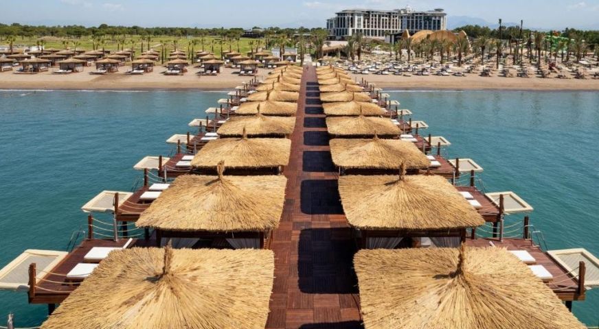 Новият хотел в Белек е модерен комплекс с голяма красива територия и високо ниво на обслужване. Тук ще намерите отопляеми басейни с площ от 3000 кв. м. воден парк. м, спа център от световна класа, детски клуб и частен плаж с бял пясък. Едно от най-големите голф игрища в Европа е на пешеходно разстояние. Хотелът работи по системата Ultra All Inclusive.