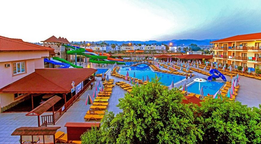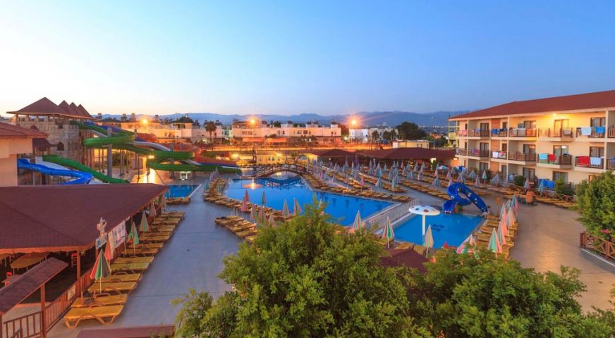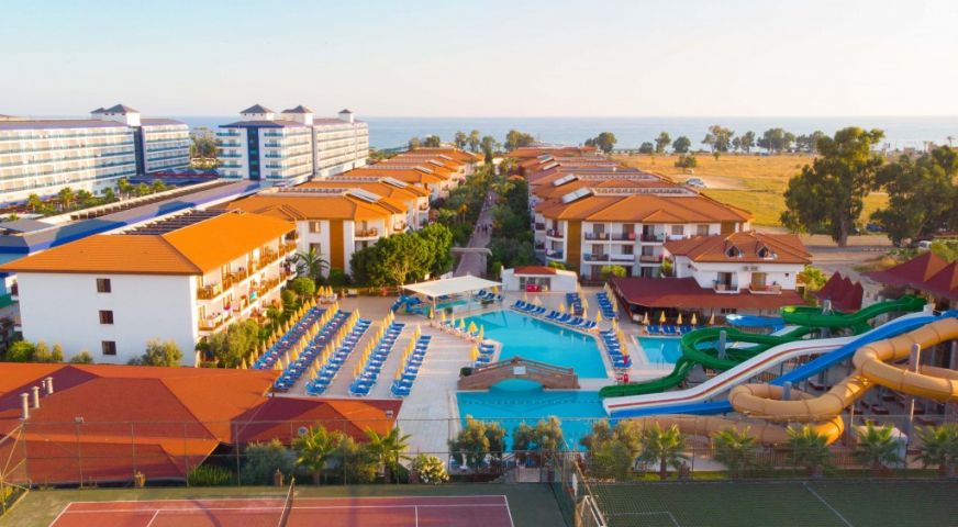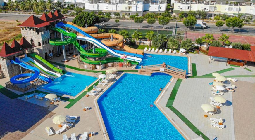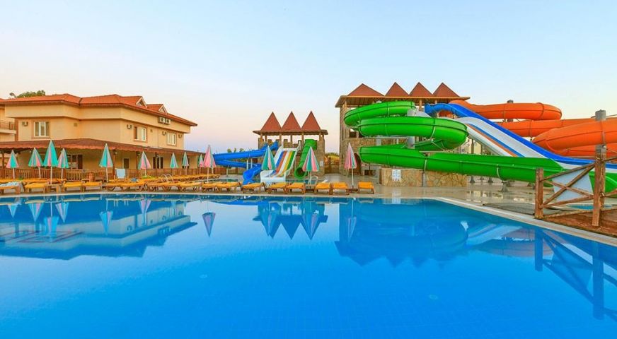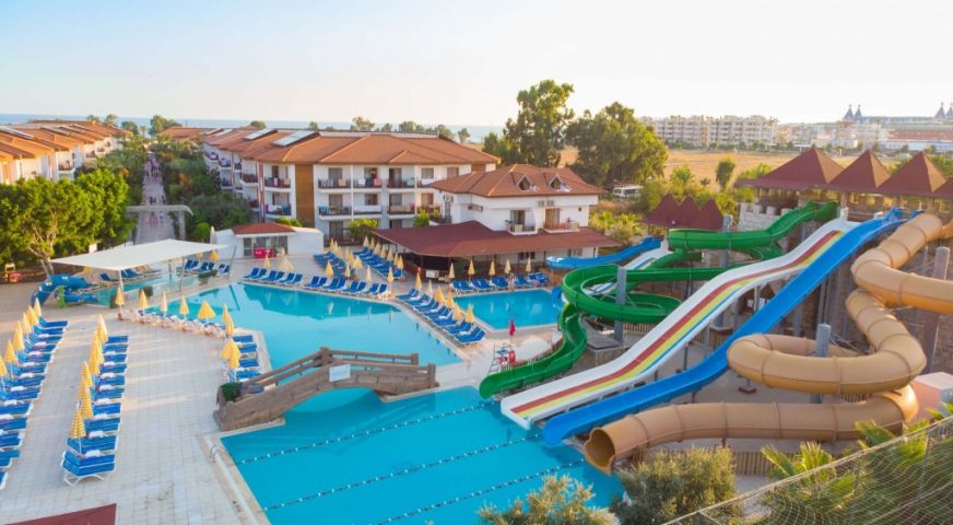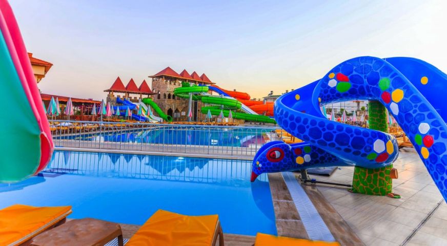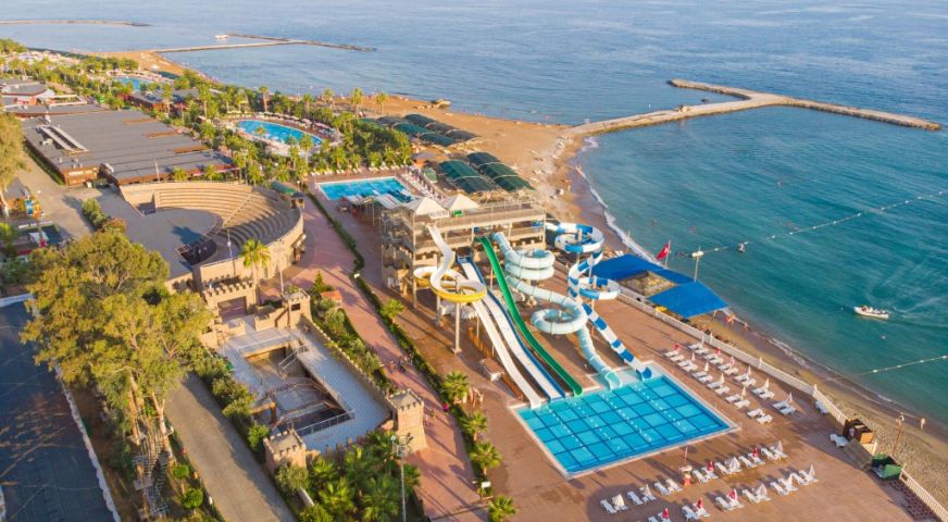 Хотелът се намира директно на брега на морето. Разполага с открит басейн, СПА център и безплатен Wi-Fi. Хотелът разполага с а-ла-карт ресторанти и лоби бар. Хотелът разполага и с аквапарк, детски басейни с водни пързалки, тераси за слънчеви бани, спортна площадка и футболно игрище. Басейнът за възрастни разполага с 4 водни пързалки, а детският с 2 малки пързалки. Деца на възраст от 4 до 12 години са добре дошли да използват мини клуба и детската площадка. Спа центърът включва сауна, турска баня и джакузи.