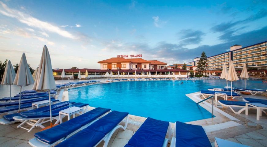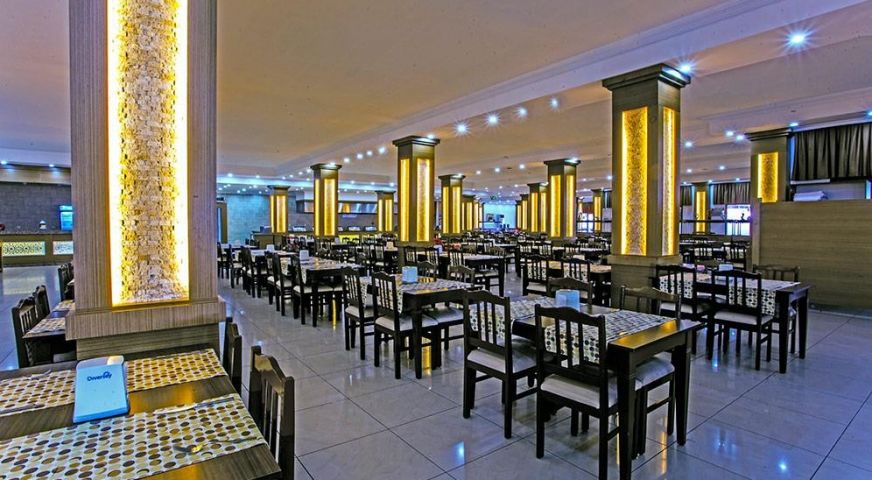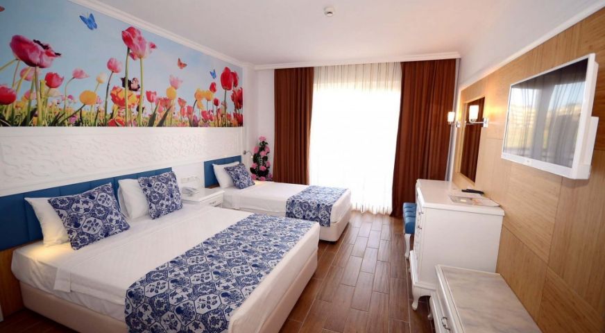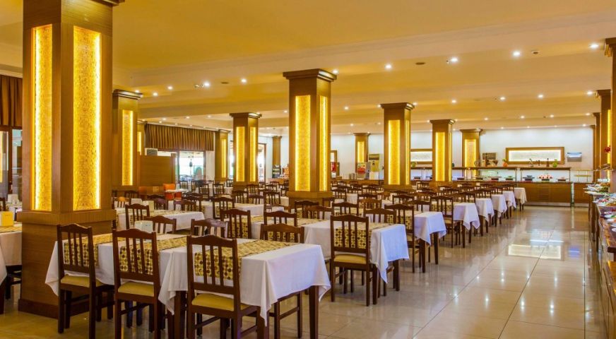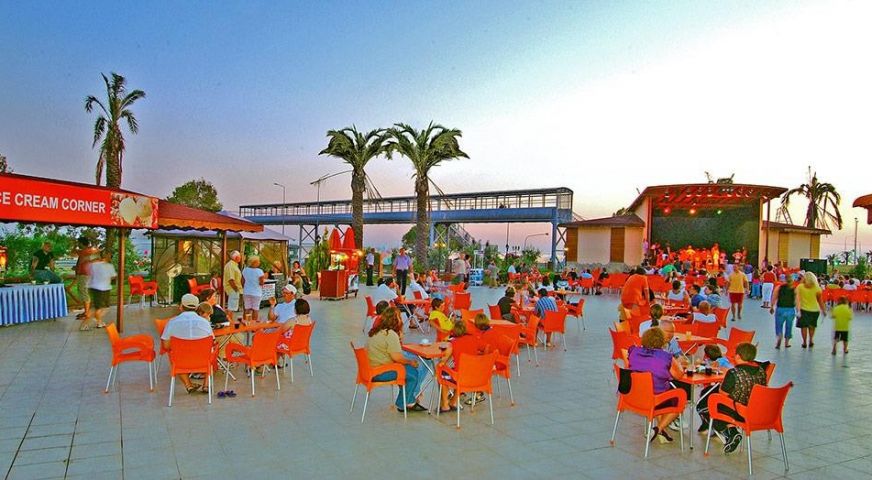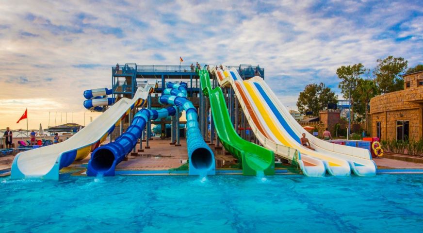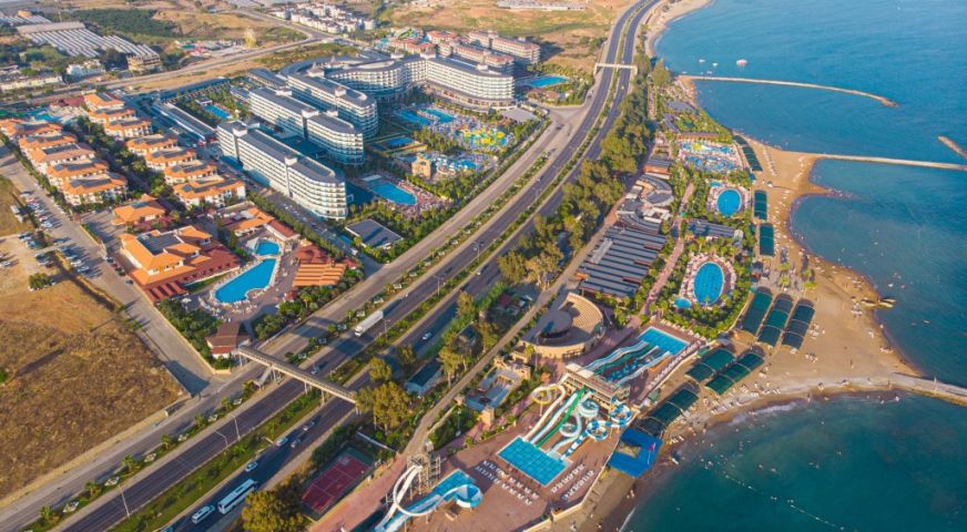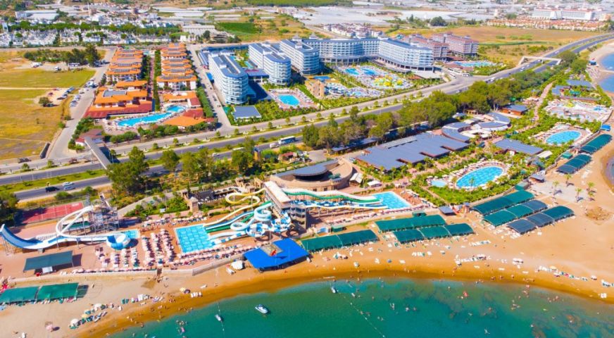 Хотелът се намира директно на брега на морето. Разполага с открит басейн, СПА център и безплатен Wi-Fi. Хотелът разполага с а-ла-карт ресторанти и лоби бар. Хотелът разполага и с аквапарк, детски басейни с водни пързалки, тераси за слънчеви бани, спортна площадка и футболно игрище. Басейнът за възрастни разполага с 4 водни пързалки, а детският с 2 малки пързалки. Деца на възраст от 4 до 12 години са добре дошли да използват мини клуба и детската площадка. Спа центърът включва сауна, турска баня и джакузи.