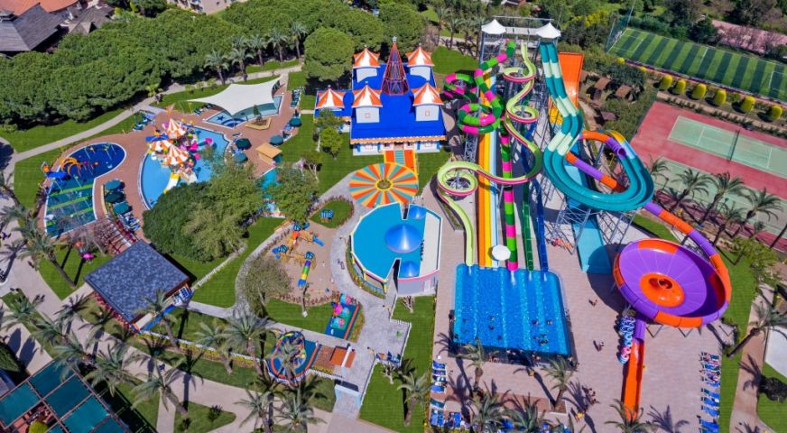 Хотелът се намира в района Кунду, в най-зелената част на Анталия. Предлага пясъчен плаж, както и различни басейни с обща площ от 4000 м², детски клуб, водни пързалки за деца и възрастни, много барове, спа център, джакузи. Курортът разполага с 6 а-ла-карт ресторанта, предлагащи разнообразие от японски, турски и морски специалитети. През деня гостите могат да се насладят на сладкиши в 2 сладкарници, 3 бара край басейна, както и витамин бар и диско бар. Препоръчва се за семейни, младежки и романтични почивки.