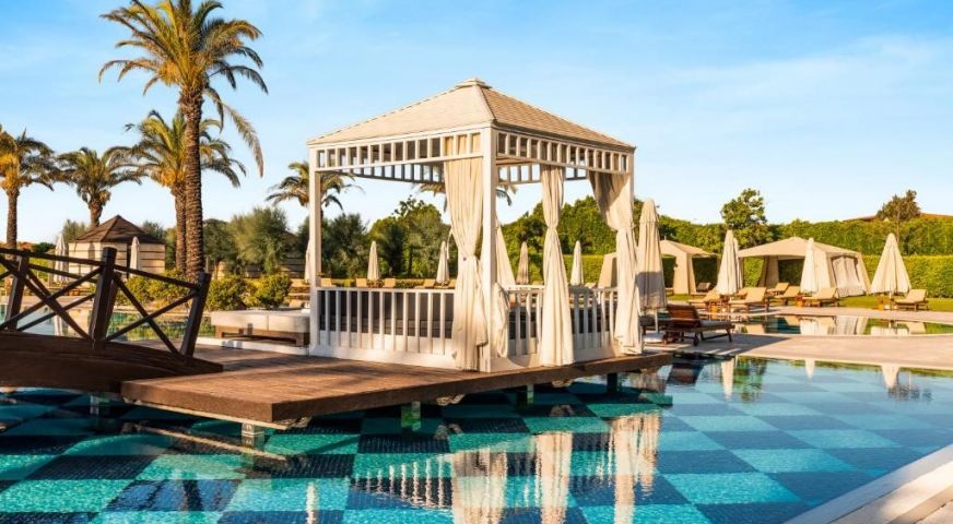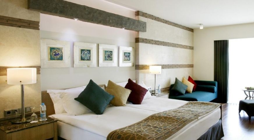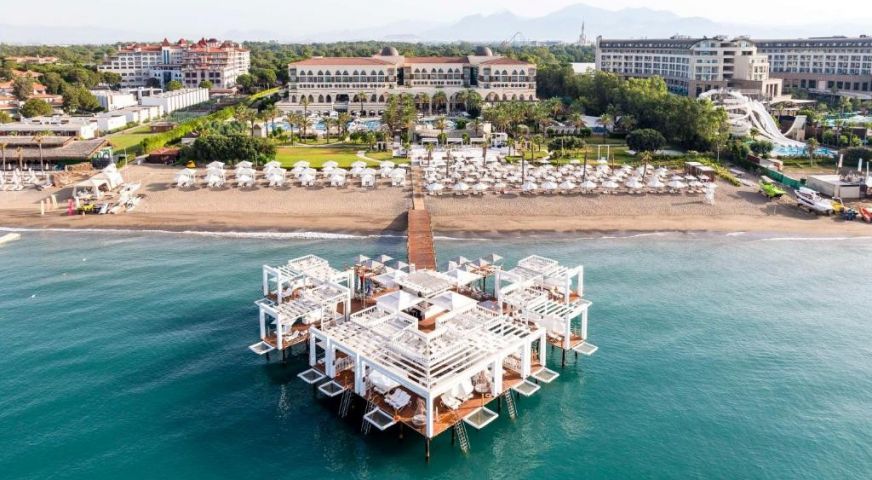На територията на хотела: Основен ресторант,4 ресторанта a la carte (азиатски, италиански, турски, грил-рибен – платено),4 бара,открит басейн,закрит басейн, лекарски кабинет,фризьорски салон,магазини,пералня,химическо чистене,бизнес център,Таласо & SPA център.