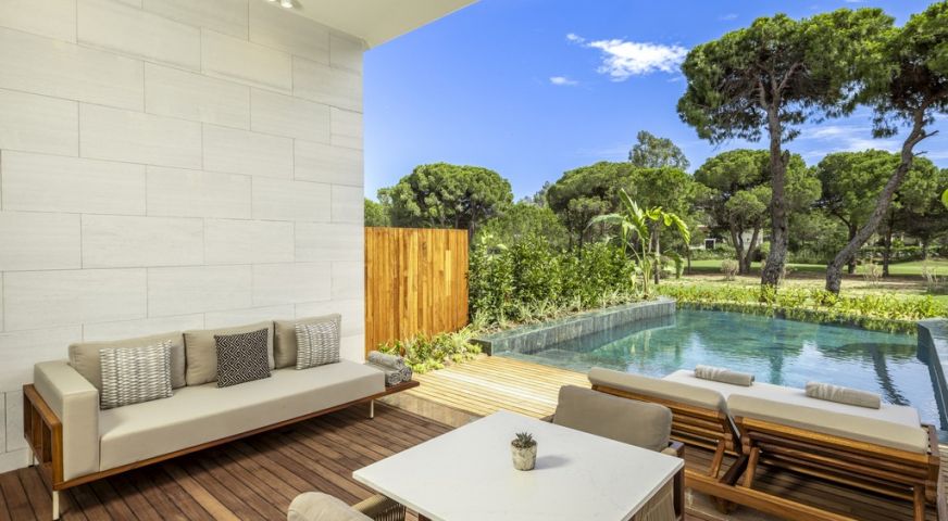 В стаите: вана и душ, сешоар, халат, чехли, централен климатик (Main building, регулира се от гостите на хотела), индивидуален климатик (villas, плазмен телевизор (може да се използва и като монитор за компютър – срещу допълнително заплащане), телефон, мини-бар (платено), сейф (безплатно), под – паркет, балкон или тераса, почистване на стаите – ежедневно, смяна на спално бельо (по желание на гостите, ежедневно), room service (24 часа, платено), интернет (безжичен, кабелен, безплатно).