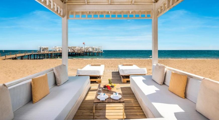 Плаж: Собствен, пясъчен пред хотела. Чадъри, шезлонги, матраци - безплатно. Плажни кърпи: безплатно. При басейна: чадъри, шезлонги, матраци - безплатно.