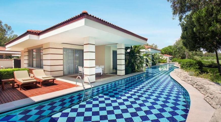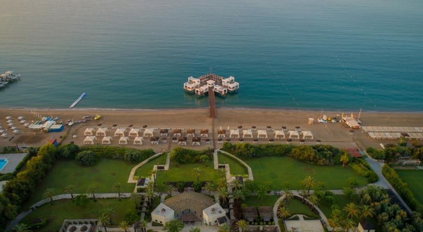Разположение: Хотелът е разположен на 25 км от летището в Анталия, на 10 км от Сиде, на 5 км от селище Кадрие, на брега на морето. Открит е през 2005 г. върху територия с обща площ 70 000 m2. Хотелът се състои от един 5-етажен корпус и осемнадесет двуетажни вили.