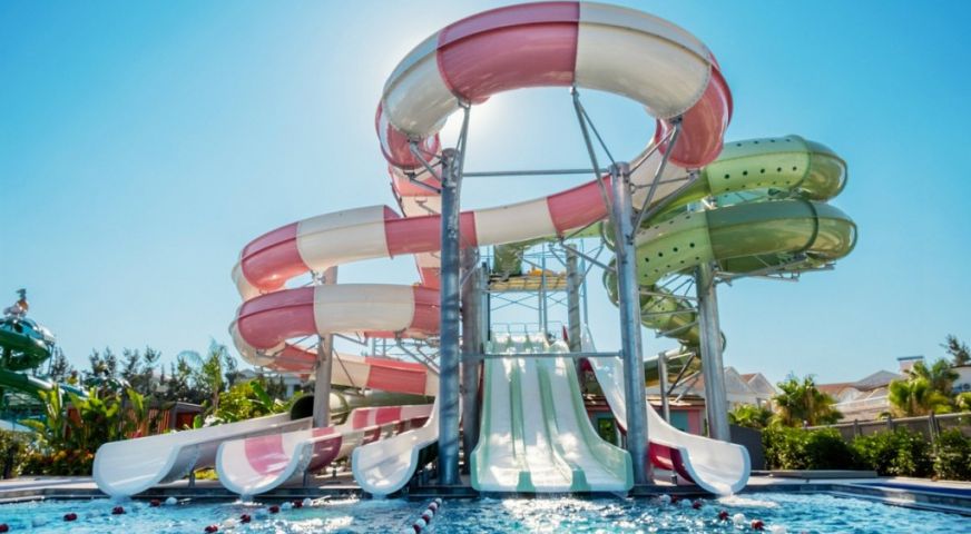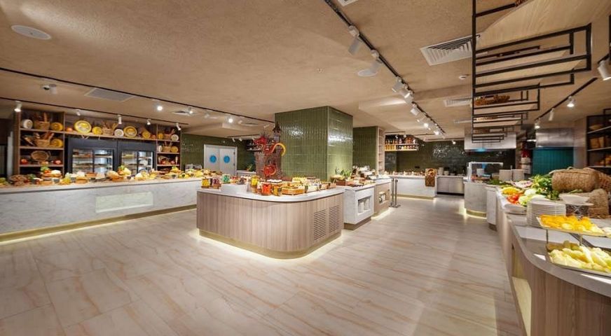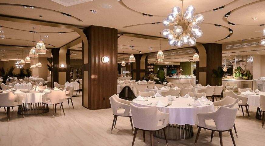 Основен ресторант, 2 а-ла-карт ресторанта (интернационален/морски ресторант – 1 безплатно посещение на 1 от ресторантите при минимум 7 нощувки, с предварителна резервация; италиански/стек ресторант – срещу заплащане, с предварителна резервация), 2 снек бара (на плажа и на терасата до басейна), сладкарница, 6 бара, 4 открити басейна (2, от които отопляеми) и 1 закрит басейн (отопляем), аквапарк с 5 водни пързалки за възрастни и 5 за деца, СПА център, магазини.